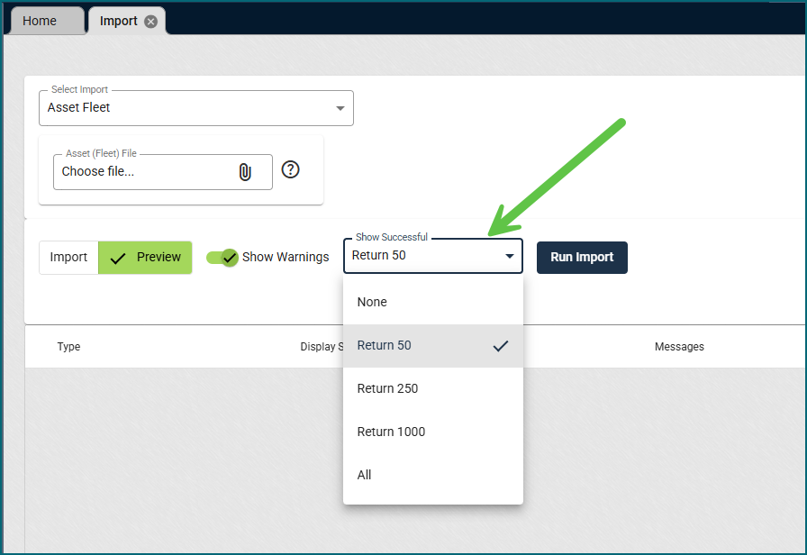 We’ve enhanced the Import view to let you preview a selected number of records before loading the full dataset. This allows you to quickly validate a small subset of data (especially helpful when importing large volumes of similar records) so you can confirm everything looks correct without waiting for all records to load on screen.