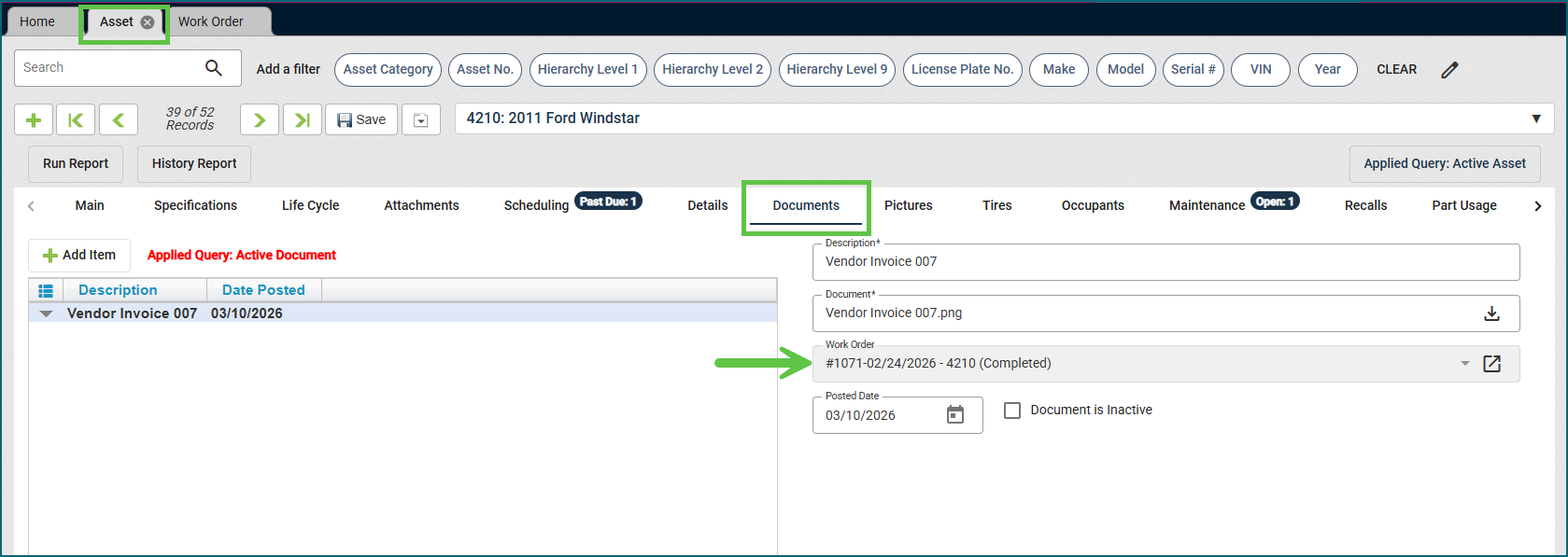 We added linkage between the Work Order Documents and Asset Documents. Now, when a Work Order has documents added to it, you can now see those documents in that Asset’s documents tab, and it will be labeled which Work Order they are from.